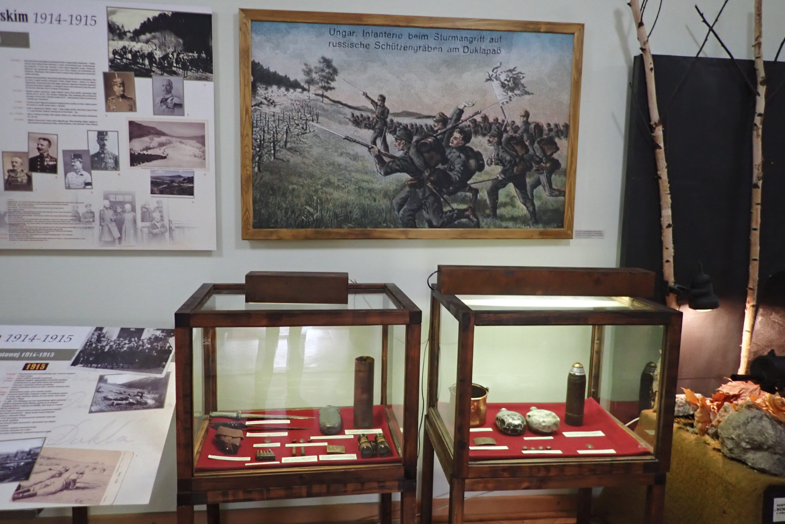 Kolejną część wystawy stanowią zbiory militarne, które pochodzą z czasów największych walk, jakie odegrały się w okolicach Dukli. Chodzi tu o zmagania wojenne w bitwie o Przełęcz Dukielską. Pośród eksponatów znajdują się między innymi broń, amunicja, mundury, dokumenty jaki i podstawowe wyposażenie każdego żołnierza.